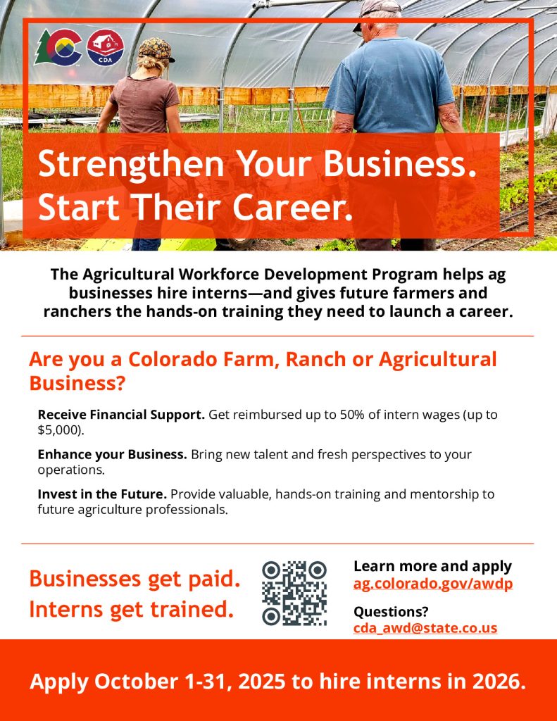 By supporting both businesses and interns, the AWDP strengthens the backbone of Colorado’s agricultural economy—and sows the seeds for a thriving future.